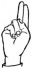 На ћирилици написано БОГДАН ЂУДУРОВИЋ састоји се из 15 слова [?]. Исписано ћириличном једноручном азбуком за глувонеме: